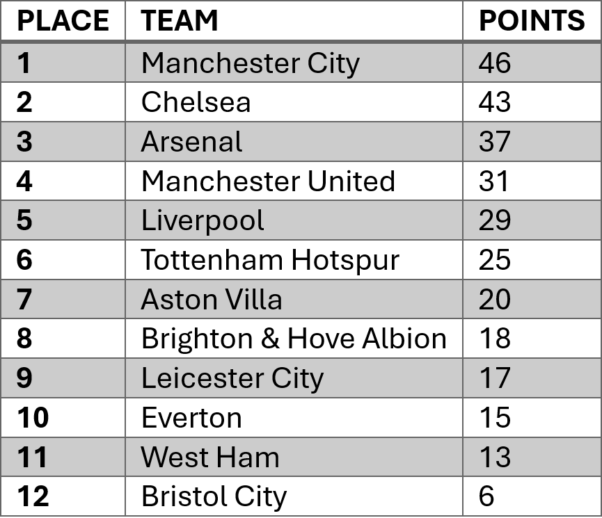 However, there are 2 games yet to be played, so this could change when the WSL returns from the international break.