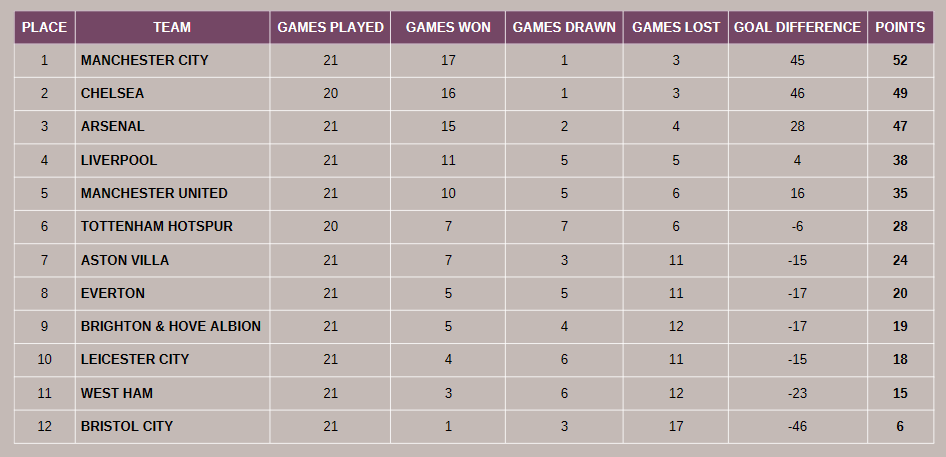 This is what the table looks like as we head into the final weekend. Despite their recent loss, Manchester City remain in the top spot.